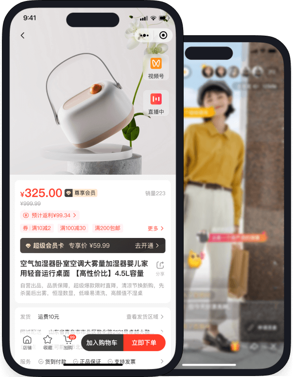 商城全渠道多终端覆盖,支持多账号运营,打通线上线下营销场景,打造电商运营闭环
