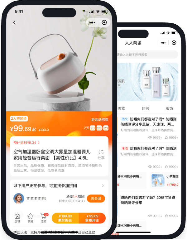 支持平台自营与商户入驻共存模式,全渠道多终端覆盖,丰富营销功能、多元盈利模式